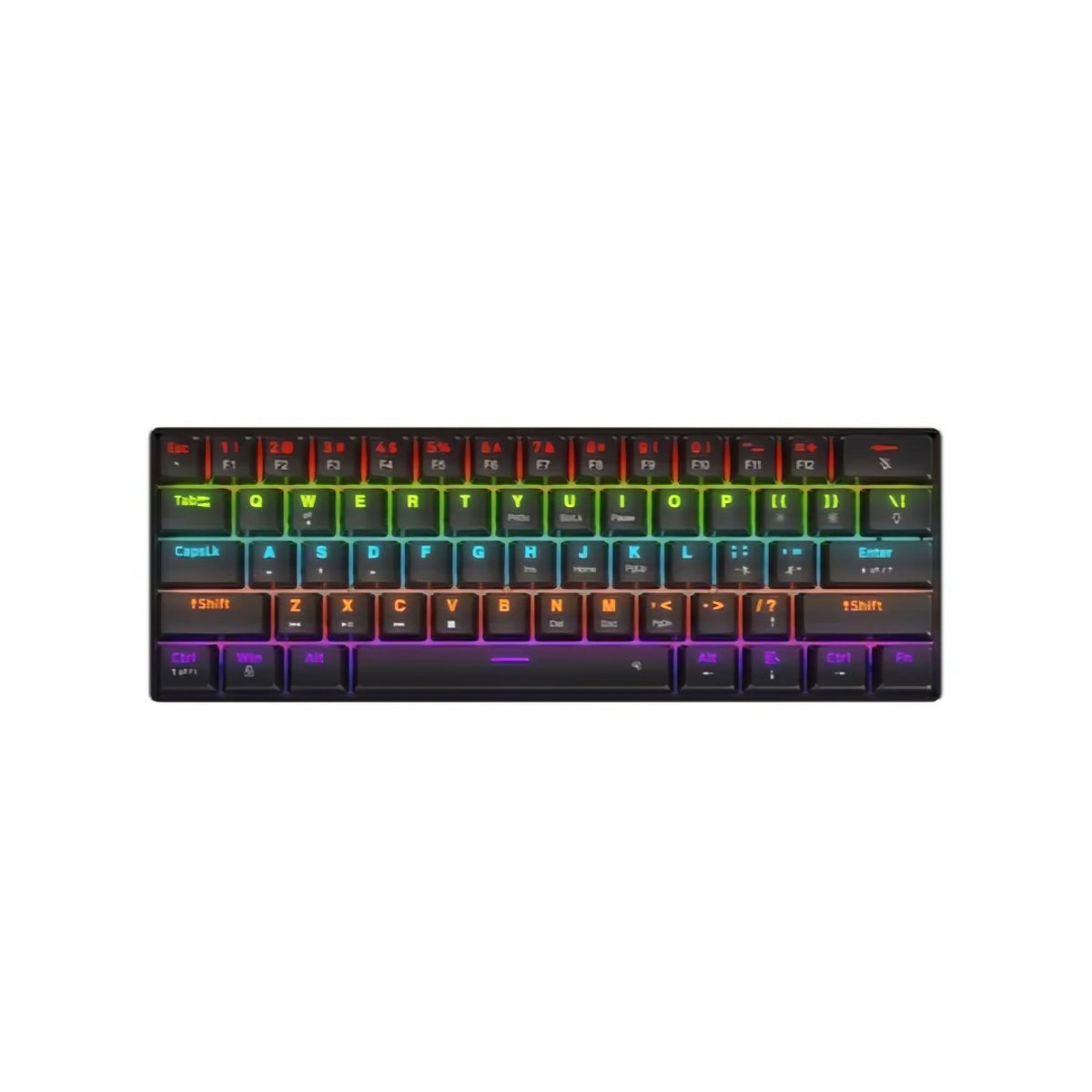 Iluminación Rainbow (Arcoíris): Cuenta con un sistema de luces vibrantes que recorre todo el teclado. Los colores fijos tipo arcoíris le dan un aspecto moderno y agresivo, resaltando cada tecla para que nunca pierdas el control, incluso jugando en total oscuridad.
